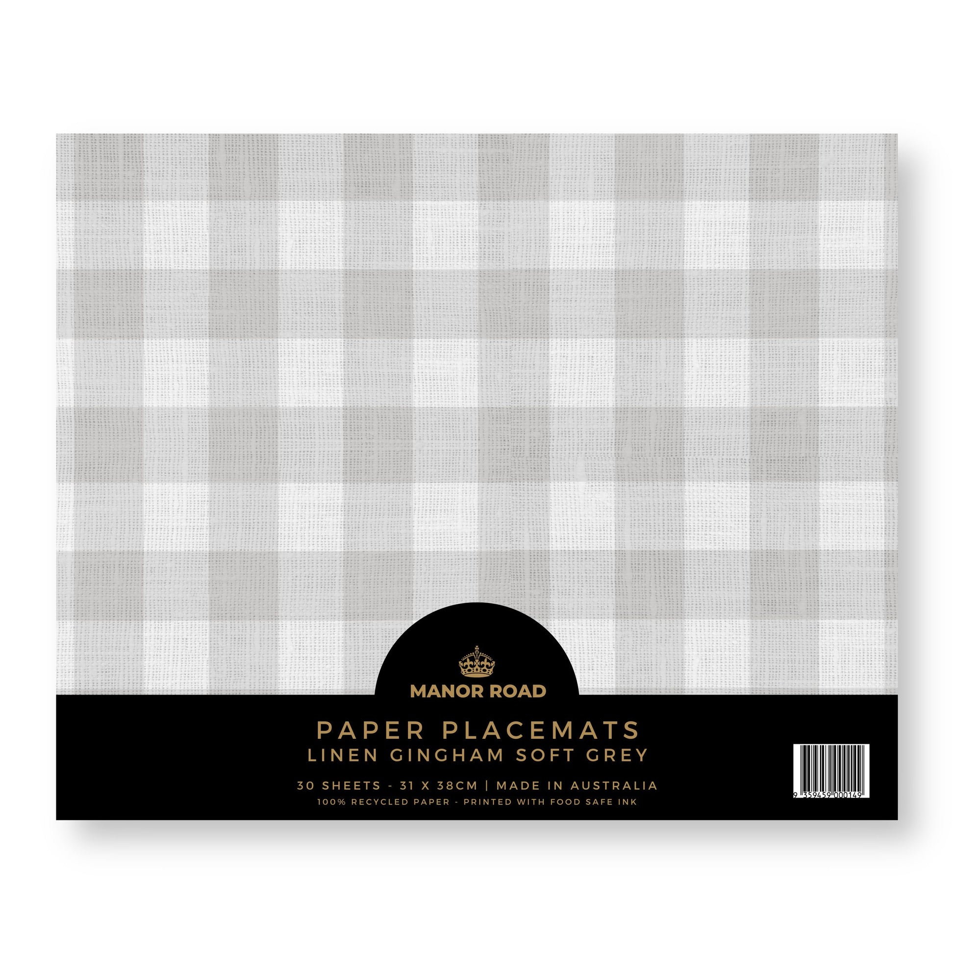 Manor Road Linen Gingham Soft Grey Paper Placemat Pad
