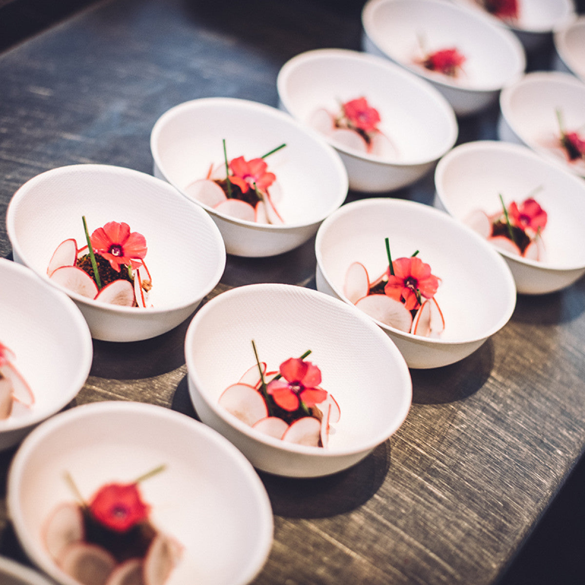 These elegant single-use bowls are a cut above any regular paper bowl. Designed in Holland by a Michelin Star chef in partnership with top designers, food looks great in these bowls, no matter whether its simple or sophisticated.